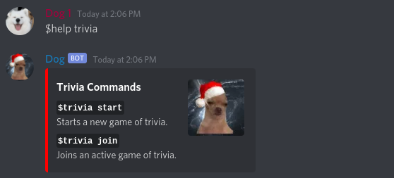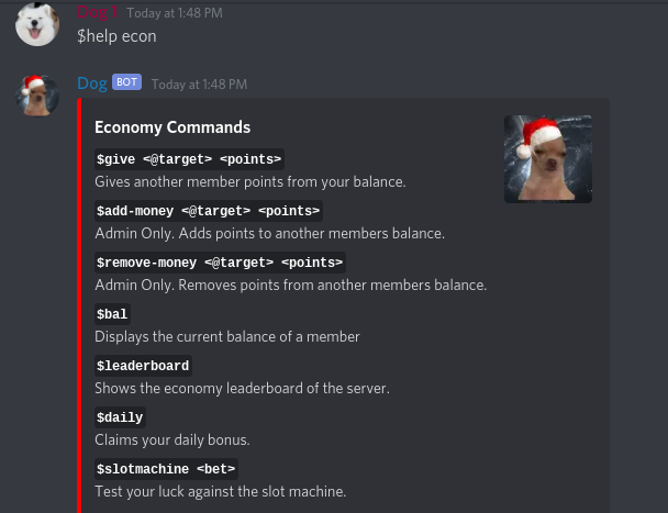 My bot, is good at lots of thing. For exaple, you want to mute someone just do $mute there @.Now, My bot is was made for moderation, but I added a few stuff. I added, Memes this would help you with your boredom. This bot is not the same bot you use everday. This bot would report, for exaple I would like to report someone all you got to do is $report there @ and say why you wanna report. Now, Thats what it can do it can do lots of stuff just do $help ONLY FOR MODS OR ADMINS. And for members is just $commands. To learn more about me go to http://dogbot.8b.io/ there will be commands and about me and new updates.