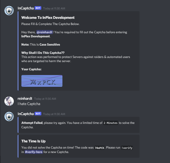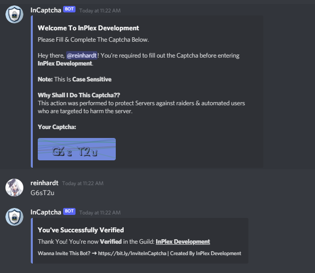 InCaptcha, a captcha-based Discord bot helps to secure your servers from raiders and automated users who targeted to harm servers.