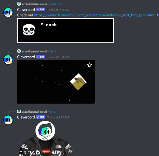 We have TONS of cool commands stuffed inside one single bot, including image-manipulating commands. Generate custom Undertale dialogues/text boxes! Eject sus users! Wear some drip! We make sure every user is satisfied with our project.