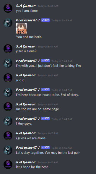 𝙋𝙧𝙤𝙛𝙚𝙨𝙨𝙤𝙧47 ✓ is an "AI" chatting bot which chat like a human it's response time is so fast and easy to setup & in 500+ servers.