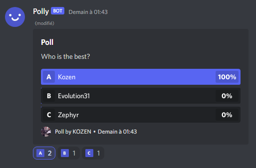 With Polly, you can easily create polls and your members can easily vote by adding reactions.