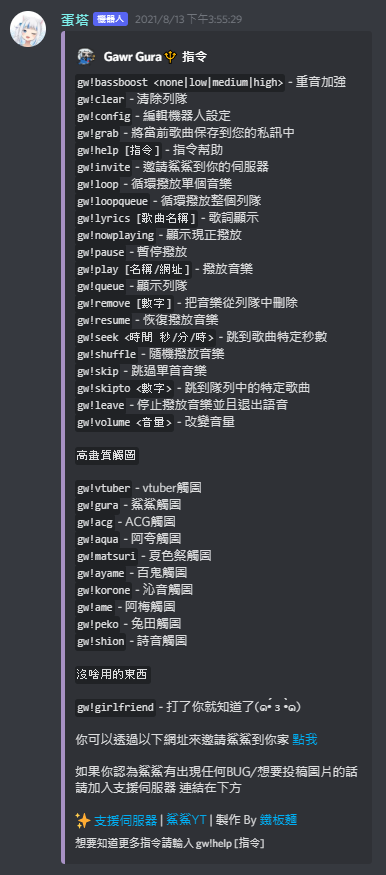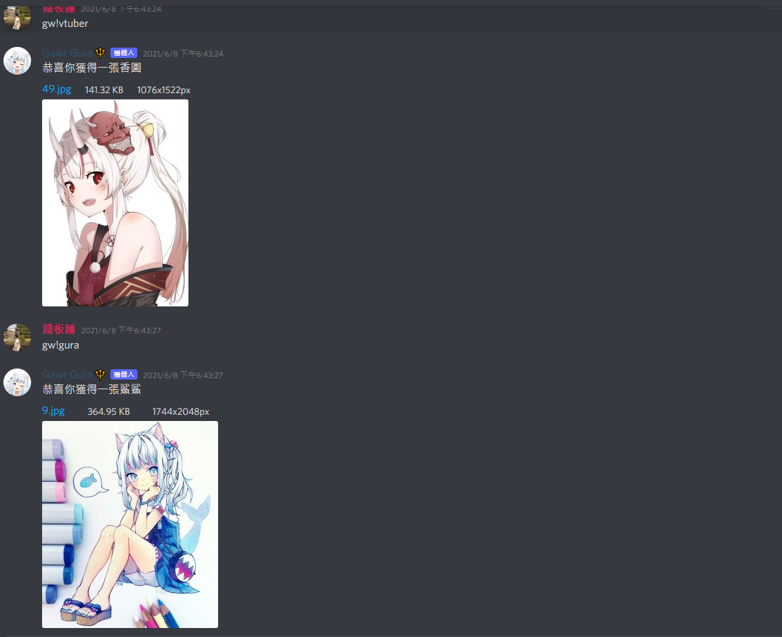 gw!vtuber - vtuber觸圖 gw!gura - 鯊鯊觸圖 gw!acg - ACG觸圖 gw!aqua - 阿夸觸圖 gw!matsuri - 夏色祭觸圖 gw!ayame - 百鬼觸圖 gw!korone - 沁音觸圖 gw!ame - 阿梅觸圖 gw!peko - 兔田觸圖 gw!shion - 詩音觸圖