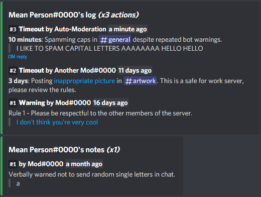 A bot with a primary focus on moderation tools: Issue warnings, timeouts, kicks and bans with an auto-mod, logging and more.
