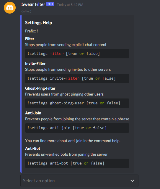 - Sets the word for the setting Anti-Join. You can enable this in the settings