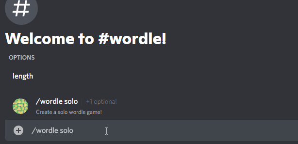 /wordle solo [optional: length] - This will create a solo wordle game for you