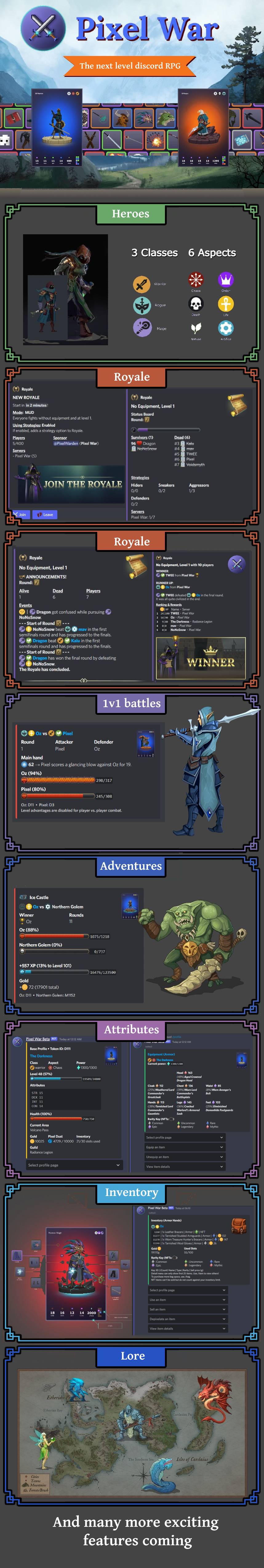 This game is amazing, you can play RPG adventures in Discord to level up your character and gain free NFT items just for playing the free game, and on top of that you can use your game character in Battle Royale games that span across many Discord servers!!!