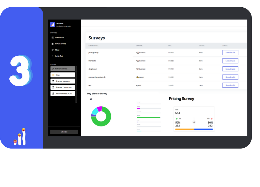 Build a better Discord server with member feedback. Find product/community fit with surveys. You can get answers about what happened, why, and how to improve your community experience.