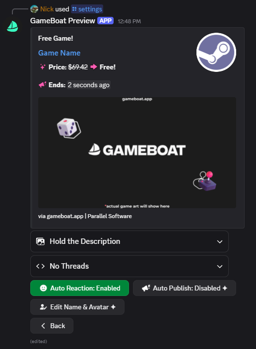 Match GameBoat to your server’s vibe with a custom name and avatar.
