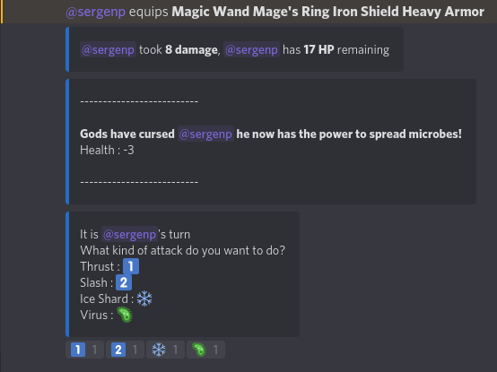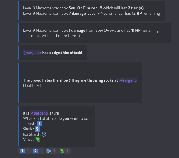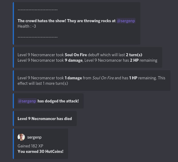 Gladoid essentially has been created for a private server called "The Hut". It started as a multi-functional bot that has some utility functionality, like searching videos on youtube based on given sentence or word. It has evolved into a RPG kind-of bot when I started working on a dueling system between players, which basically you challenge a discord member to a duel, game starts, you have certain kind of moves available to you, you react to the message the bot has send to choose from one of the moves and with some calculation happening in the background the other player takes damage.