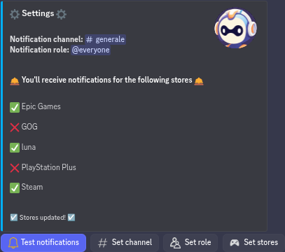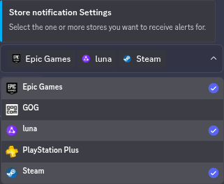 Free game notifications for epic games, steam, gog,playstation plus and luna !!