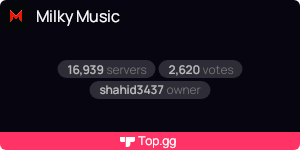 🎵 Milky Music – Your Smooth & Simple Music Companion! Stream high-quality music in your Discord server with ease. Milky Music supports YouTube, Spotify, SoundCloud & more. Enjoy lag-free playback, easy commands, and 24/7 uptime. Perfect for chill hangouts, parties, or study sessions.