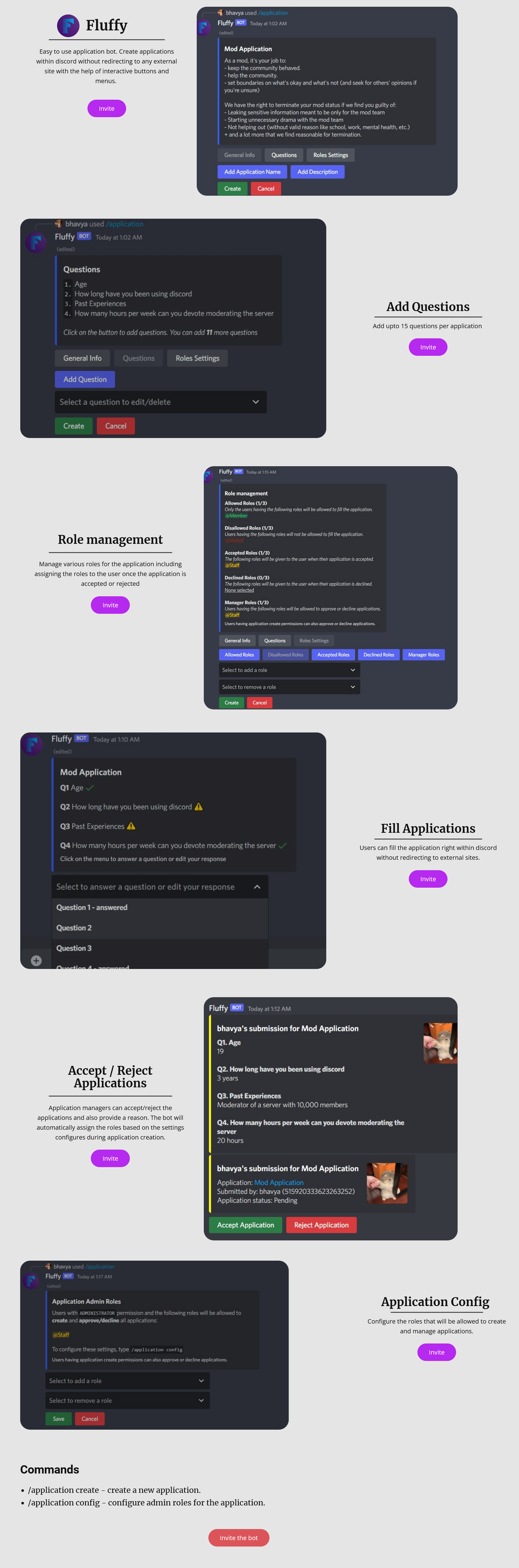 Highly customizable and easy to use application bot. Create application forms right within discord without redirecting to external websites.