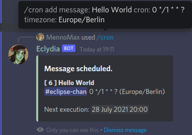 /cron - schedule Cron Jobs (to send messages and execute commands in a fixed interval)