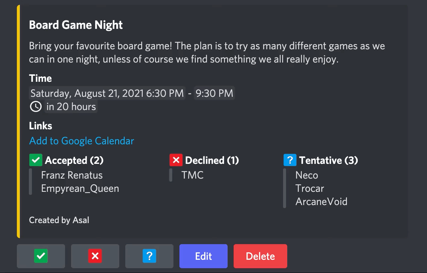 All-in-one calendar bot for Discord. Recurring events, magic time zones, event reminders, role based sign-ups, and more!