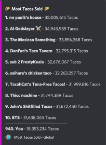 Taco shack makes this game fun. I love all the events and competitions as well as the good conversations when you feel like chatting. It’s a great game with great people who welcome you, and do all they can to help you achieve your goals. Try it out, you will love it!