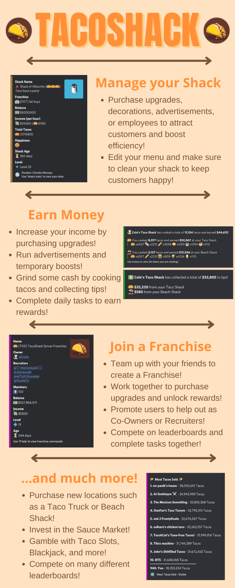 Manage your own Taco Shack! Buy upgrades, hire employees, run advertisements, and most importantly... sell tacos!