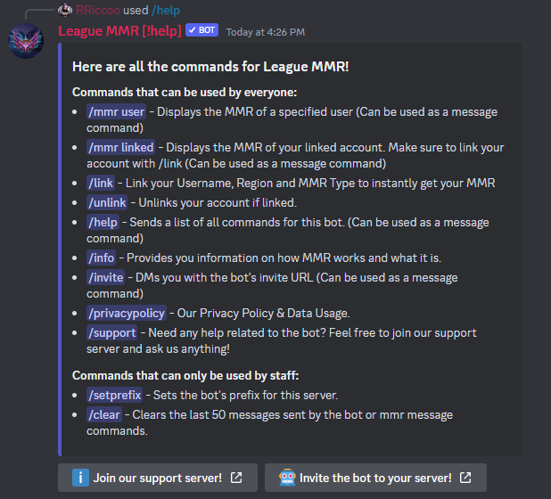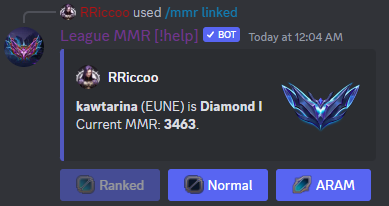Discord bot created for League of Legends to show you your Matchmaking Rating (MMR), your hidden rank.