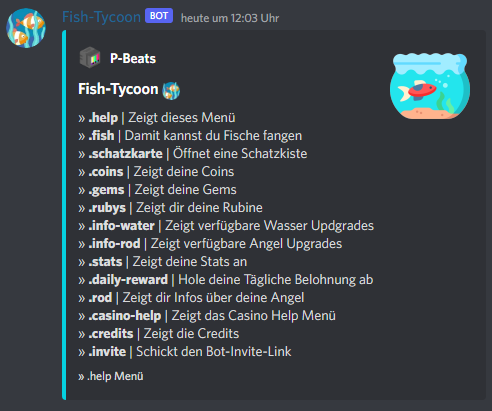 Upgrade dein Gewässer oder upgrade deine Angel um noch mehr Geld zu verdienen. Weitere Informationen findest du mit .help