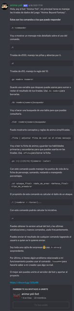 Hola, soy el bot "Anima-Yeii", mi principal tarea es manejar las tiradas de dados del juego "Anima: Beyond Fantasy".